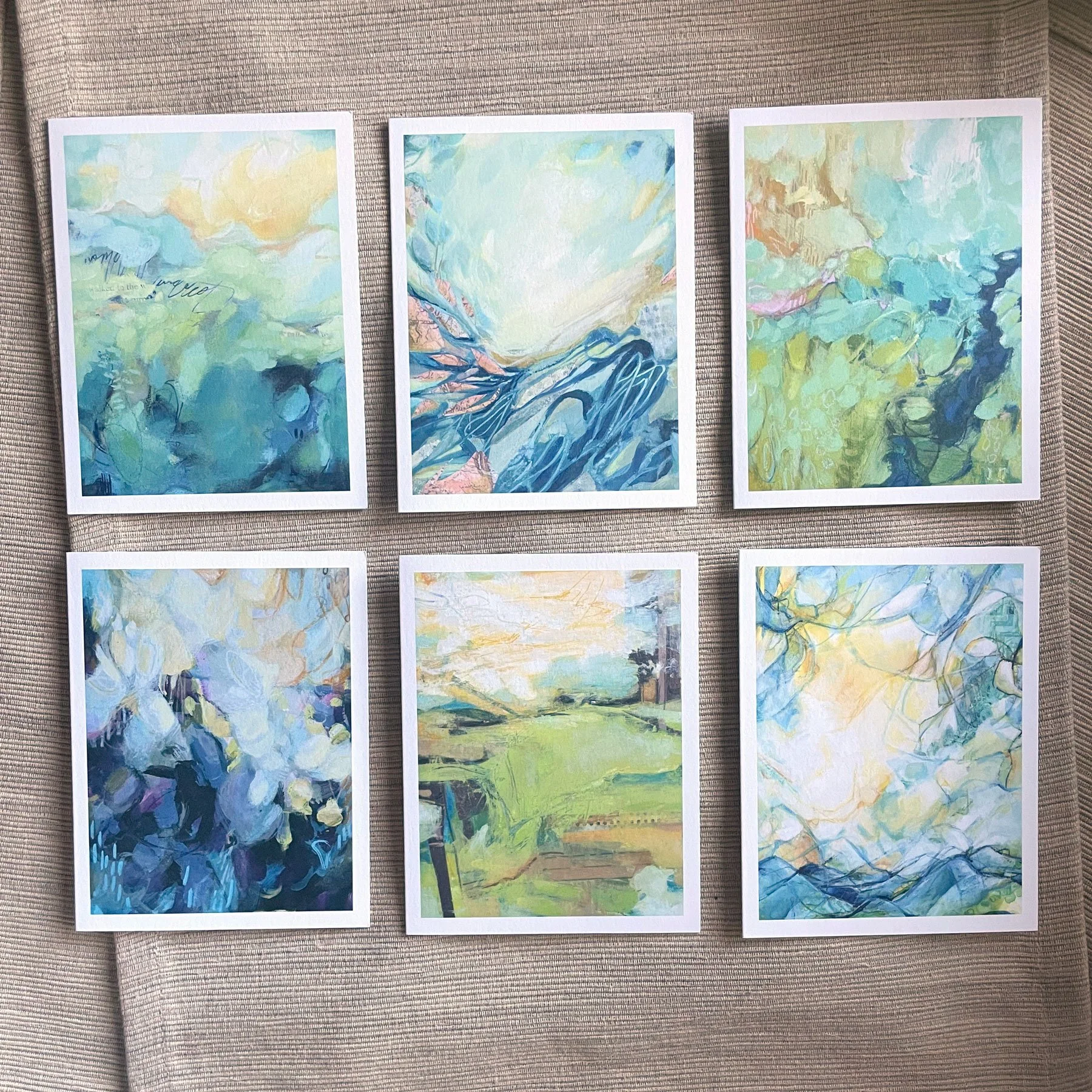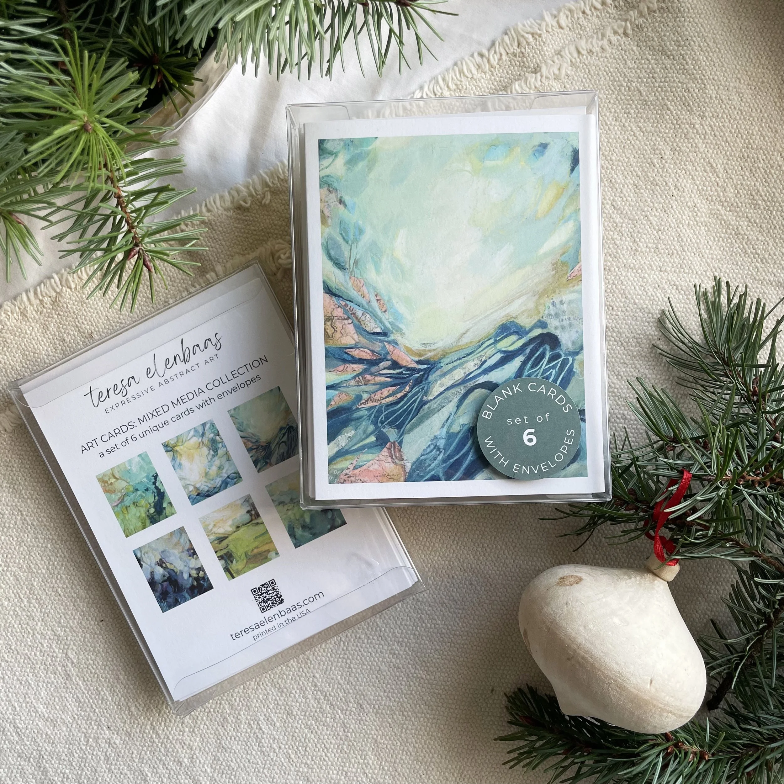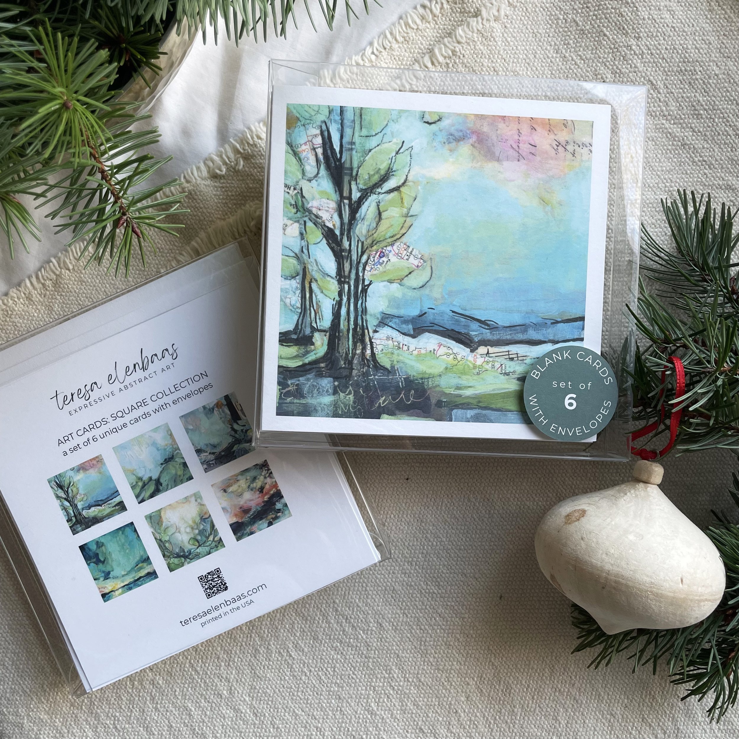 Set of 6 unique cards with envelopes featuring the colorful art of Teresa Elenbaas.