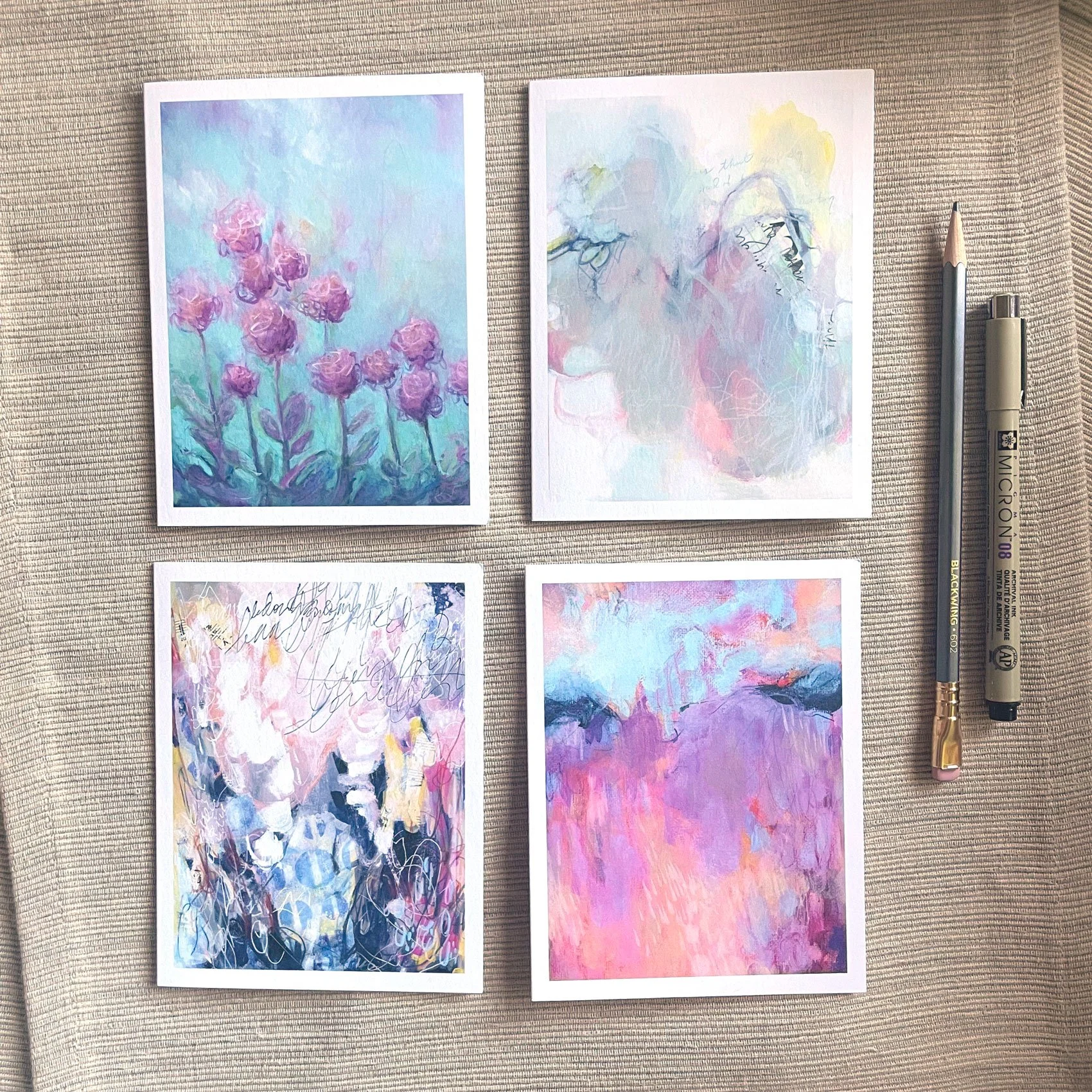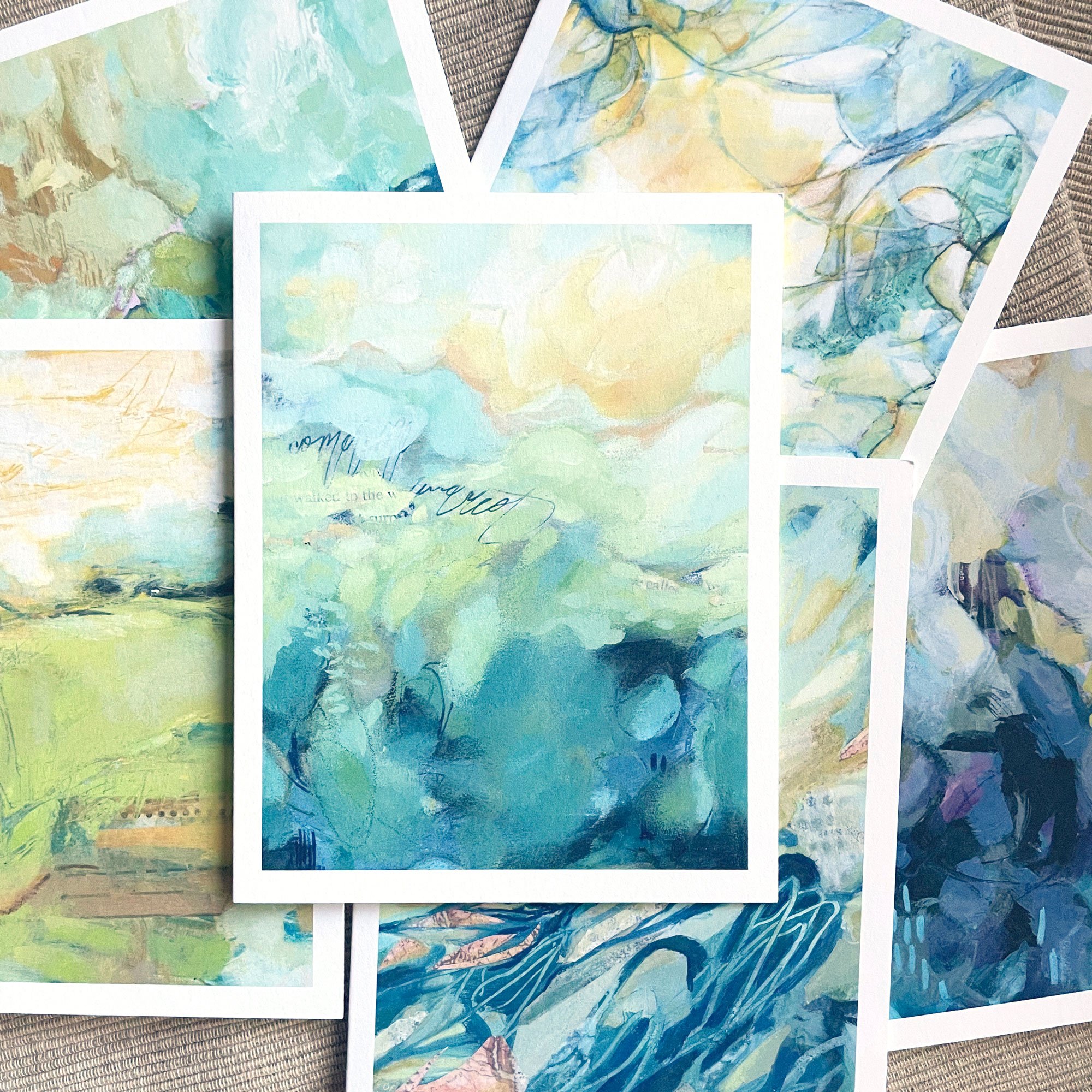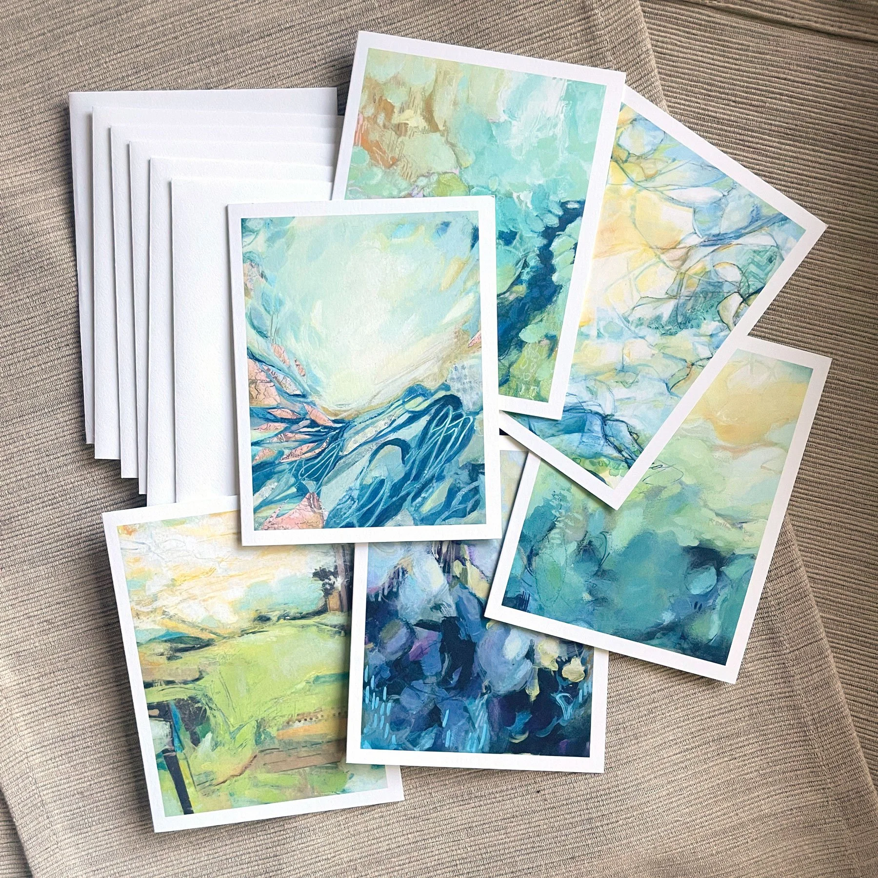 Set of 6 unique cards with envelopes featuring the colorful art of Teresa Elenbaas.